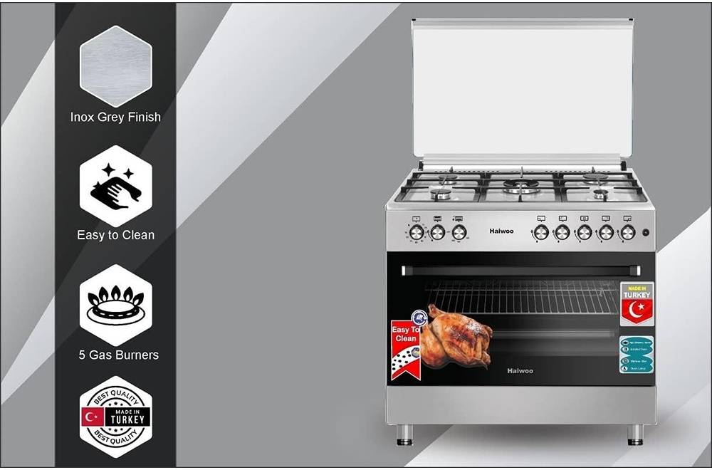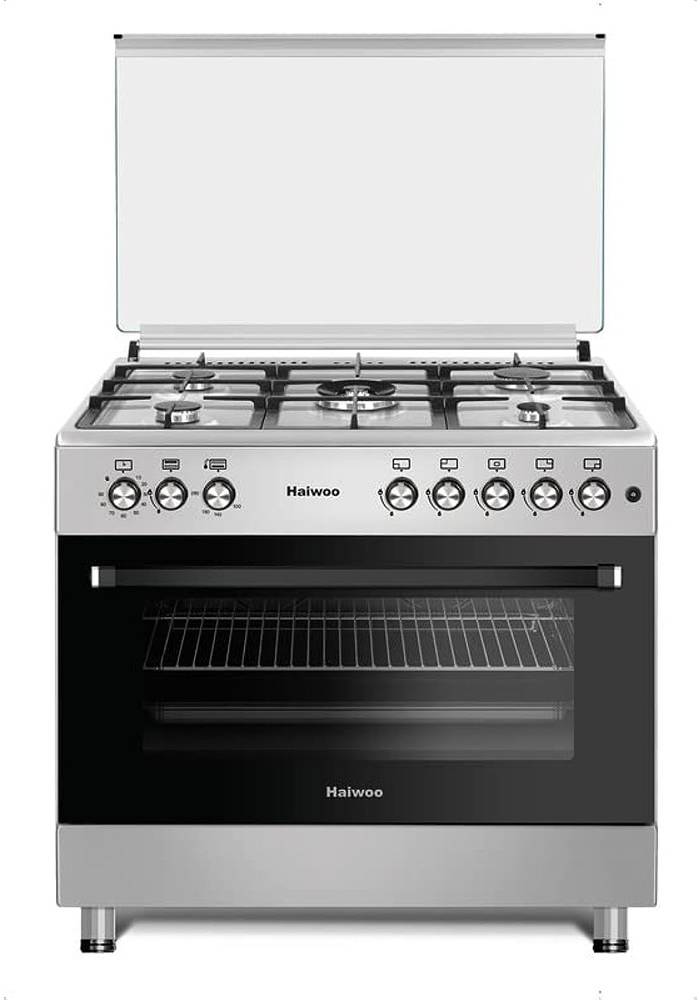 Haiwoo HCR 9060-HIX Cooking Range, 5 Gas Burners, Knob Ignition, Inox Sides, AC220-240V, 280°C, Grey | B0C6HXZGQN