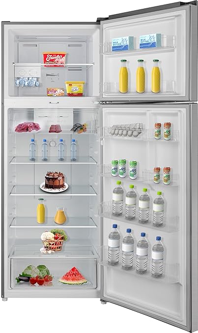 Haiwoo HRT-455 TID 455Liters Double Door Top Mount Refrigerator, Multi Air Flow No Frost Fridge & Freezer with and, Interior LED Light & HRT455FCS Titanium Silver