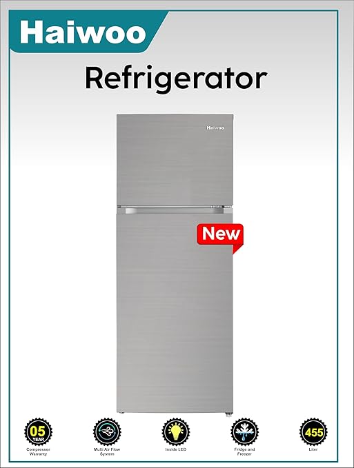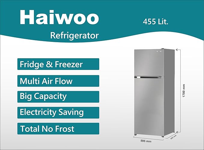 Be the first to review “Haiwoo HRT-455 TID 455Liters Double Door Top Mount Refrigerator, Multi Air Flow No Frost Fridge & Freezer with and, Interior LED Light & HRT455FCS Titanium Silver”