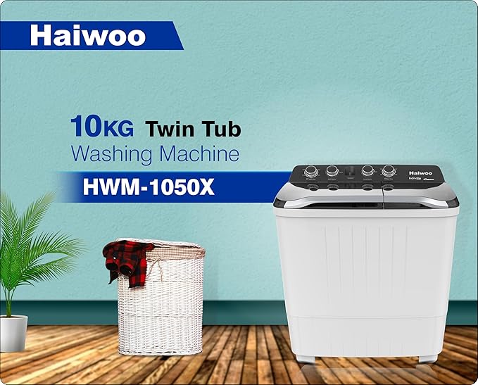 Haiwoo HWM-1050X 10kg Semi-Automatic Top Load Twin Tub Washing Machine with Quick Wash & Auto Balance Control, Silent Operation, Powerful Pulsator, Rust-Proof Body Spin Easily With One Twist HWM-1050X